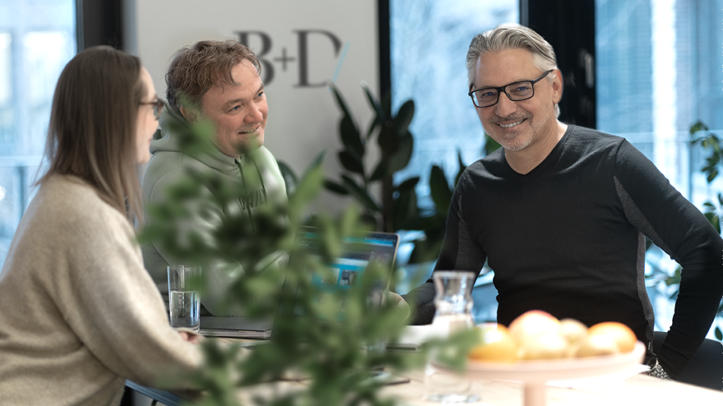 Wir sind B+D. Ein Team aus 120 Kolleg:innen. Strategie, Konzept, Gestaltung und Umsetzung kommen bei uns aus einer Hand.